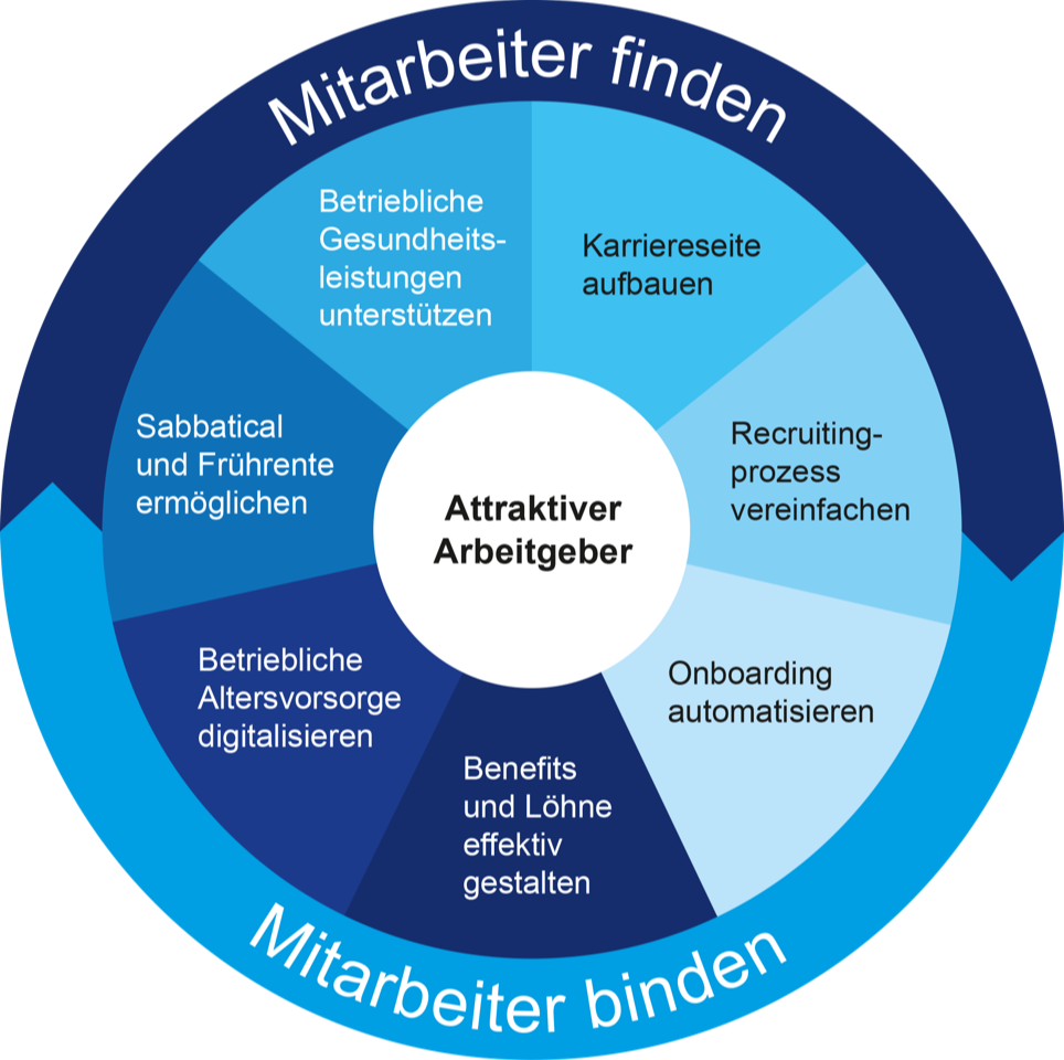 Effektive Lohngestaltung, attraktive, individuell auswählbare Benefits, die Optionen auf Sabbaticals oder vorzeitigem Ruhestand verbessern Ihre Mitarbeiterbindung und machen aus Mitarbeitern Werbeträger.